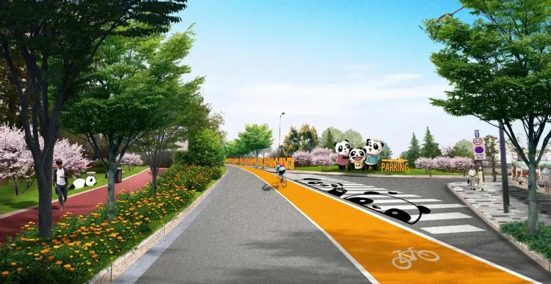 城市次干道熊猫大道北至城北高速,南至成华大道,是串联整个成都熊猫国际旅游度假区的景观绿道,全长约5.2公里;东林二路连接熊猫大道和城市环路,全长约0.8公里。