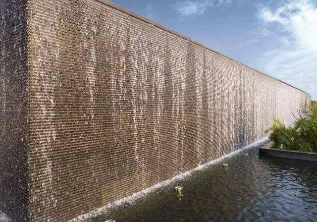 水幕墙最大的特点就是用水柔滑建筑生硬的表面,建筑因而变得更为亲切,自然,并且充满活力,让人产生一种与之亲近的愿望。