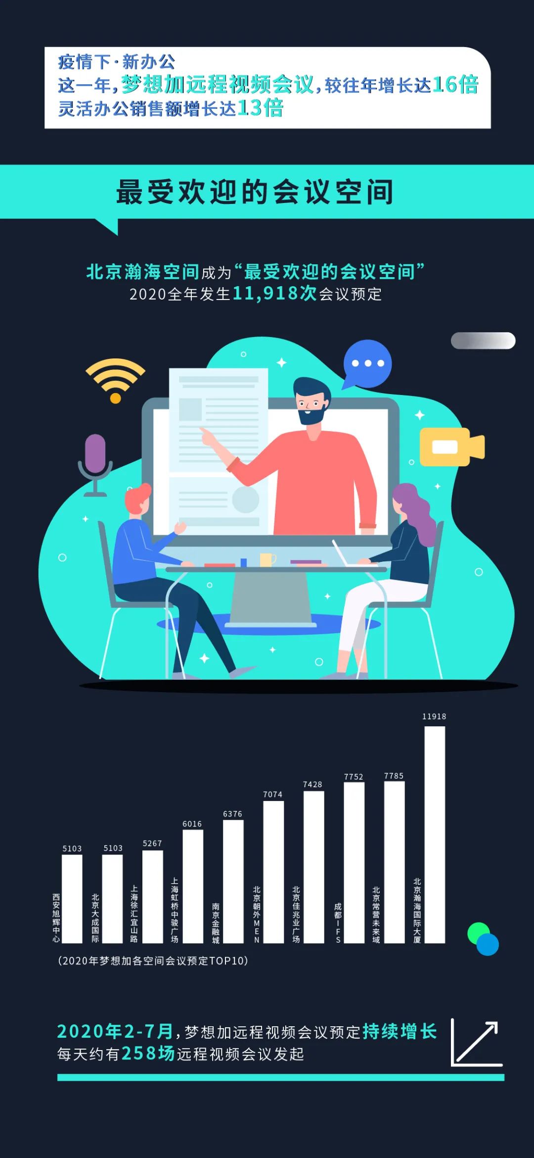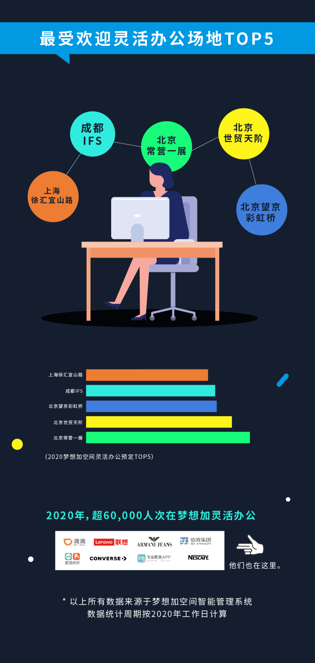 梦想加是一个专注科技体验的办公空间服务品牌,2015年5月成立于中国北京,致力于智能、健康、高效、开放的办公服务体验,为不同规模、不同需求的客户提供灵活优质的办公解决方案。目前在北京、成都、上海、杭州、西安、南京等核心城市运营近40个空间,运营管理面积超30万平米,智能系统管理面积超100万平米。