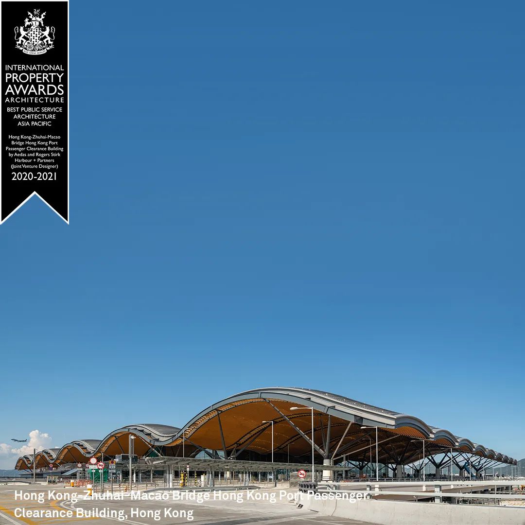 Aedas和RSHP是港珠澳大桥香港口岸旅检大楼的联合设计方。该建筑设有海关和出入境设施,供旅客通过桥梁出入香港。通过有效连接珠海、澳门和香港,并连通珠江三角洲的西部与东部,从而促进了大湾区11个城市之间的人员、货物、资本和信息的流动。除此之外,旅检大楼高效节能且环保。建筑的屋顶以波浪形态进行设计,模仿海洋的起伏流动,大量自然光线可以射入。