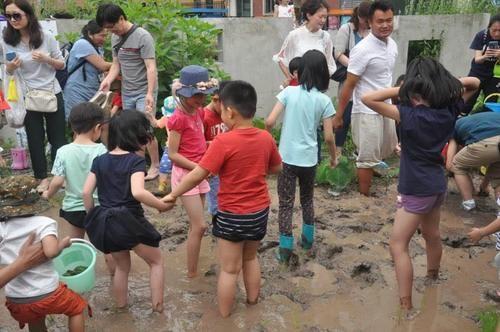 再过几天,这里一处20来平米的水田里还会让居民们体验一把插秧的感觉,水稻收获时也会举办祈福仪式。即将到来的暑期,"创智农园"还将组织一部分家长志愿者成为这里暑期夏令营的"老师",带着孩子们一起学习相关知识。