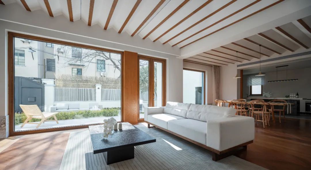 所以,首先采用了很多开放式的策略,让这个空间更加的宽阔通透,把原来小房间的格局变成了大的开间,让它能够去适应很多的灵活使用方式。在整个室内的装修风格以及材质的选择,也尽量往绝大多数人能接受的一个方向去做。包括对于外墙和花园,是用一个相对比较简约的方式来处理。