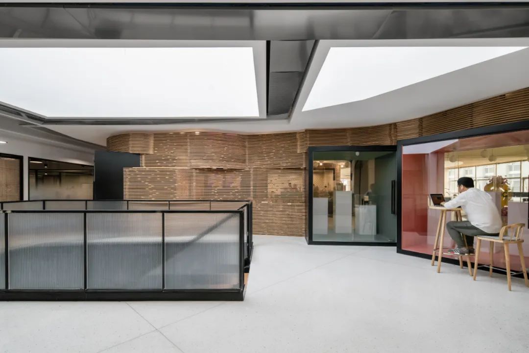 The establishment of a mute book office space with asense of encirclement in the atrium is reminiscent of the self-study room ofthe university library. With comfortable leisure office furniture, the wholearea is full of natural light and softwood, brightness and color temperatureare suitable for long hours of office or reading. So that this is not atraditional office space to kill time, but a space that can enhance personalvalue, which is also the key to the difference between joint office and traditionaloffice.