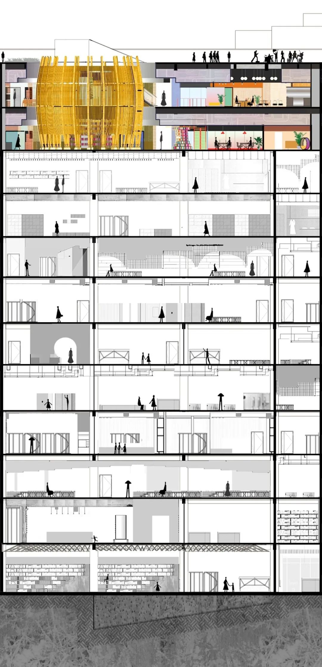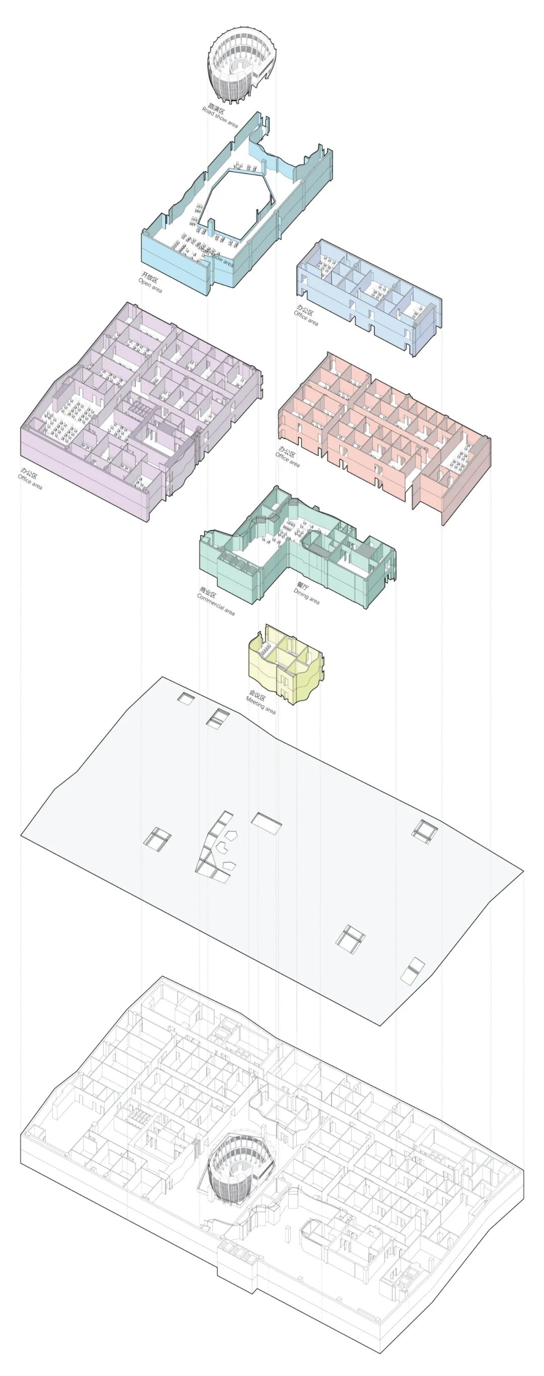 The unique natural conditions of Yunnan have formedmany unique terraces and bamboo buildings here, and nearby villages aredistributed around the terraces, forming an aggregated layout. We combine theseelements with the functions of the modern community in the co-working office toform a regional-based spatial layout pattern around the middle shared space andsurrounded by various functions. At the same time, the function of co-workingalso creates a community-based office mode, breaking the negative impact oftraditional office buildings on people.