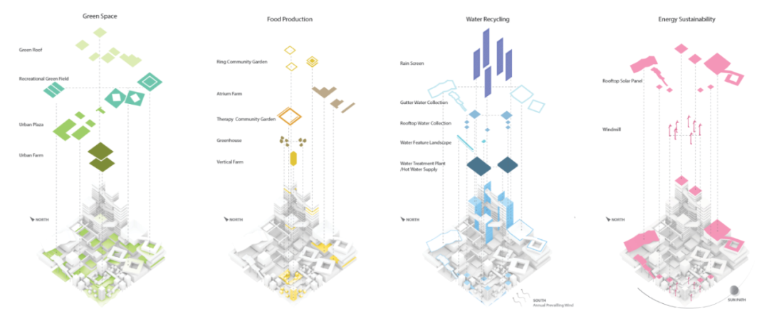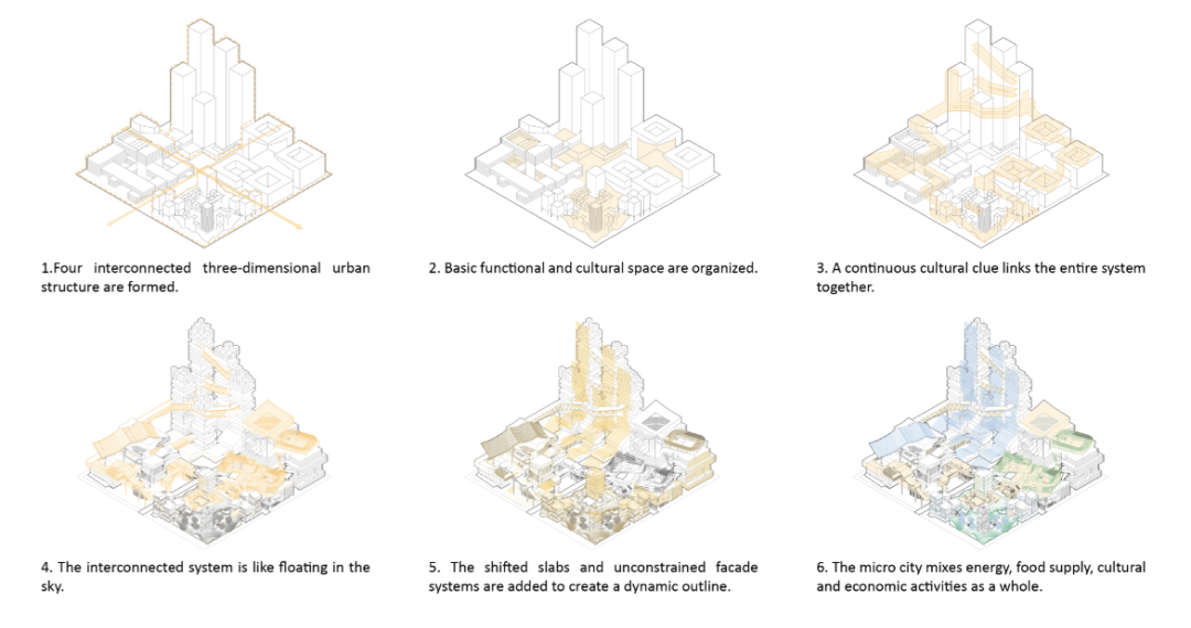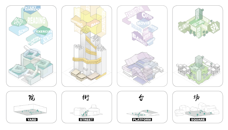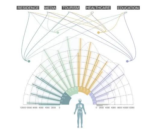 未来城市人口指数化增长,并且随着城市极速的扩张,新兴科技的融入、网络的蔓延。城市逐渐趋同,人们也渐渐的对居住的城市感到陌生而麻木。城市的魅力在于社会联系和城市温度。这个温度是来自不同背景的人们在陌生城市空间下的亲近距离。在中国的文化中,人们对城市生活的理想,是老吾老以及人之老,幼吾幼以及人之幼的“大同”。城市不仅包容着不同年龄的人群,更加拉近了人们因年龄而疏远的距离。在未来的城市,居住人口势必面临更剧烈的和更绝对的世代分离,人群孤立。对于未来人性化的解读,我们希望空间能缓和/对抗/时间(对人们的必然作用)。