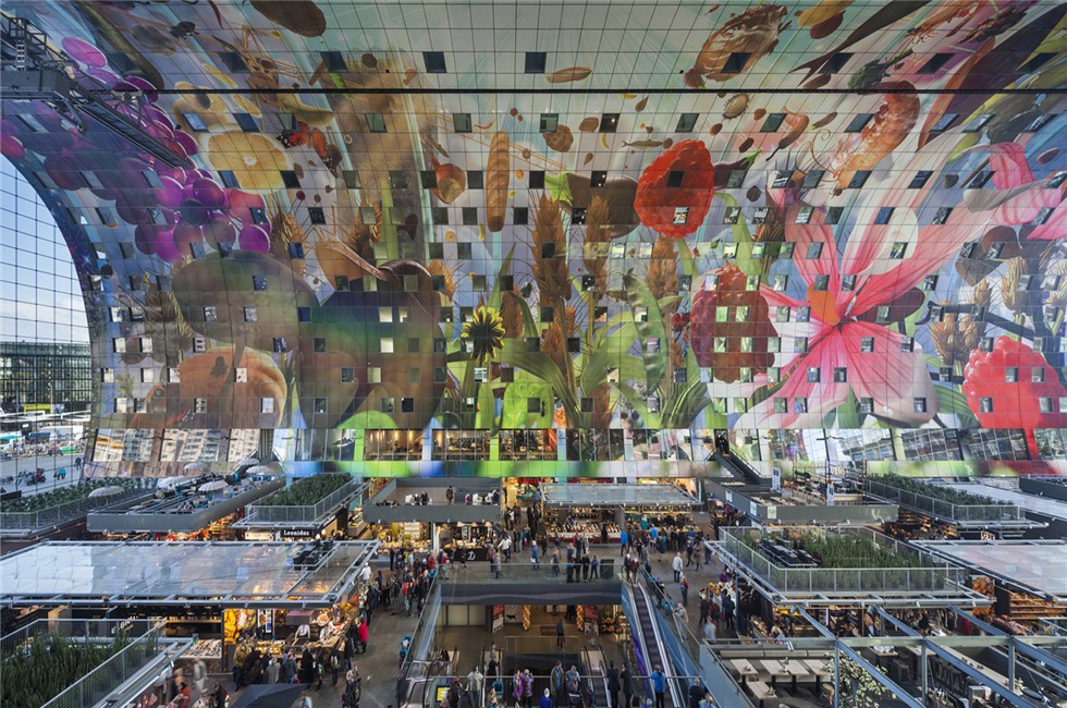 一个新型的菜市场可能跃升为城市的地标和旅游的打卡地。比如鹿特丹的Market Hall,是荷兰首座顶盖式的菜市场,实则为“超级便民综合体”,市场的功能可以解决80%的生活需求。