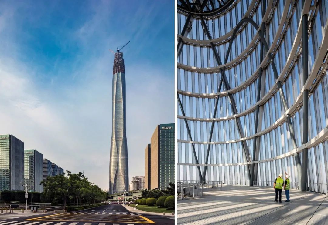 这座大厦也是国内施工难度最大的超高层建筑之一。项目全面采用了建筑信息建模(BIM)技术来实现信息化管理,提升施工效率。通过这种技术对幕墙系统和后续安装工序进行计算、模拟和优化,可大幅减少玻璃及型材的种类和数量,有效避免了浪费,在节约成本和兼顾环保的同时降低了工程难度。
