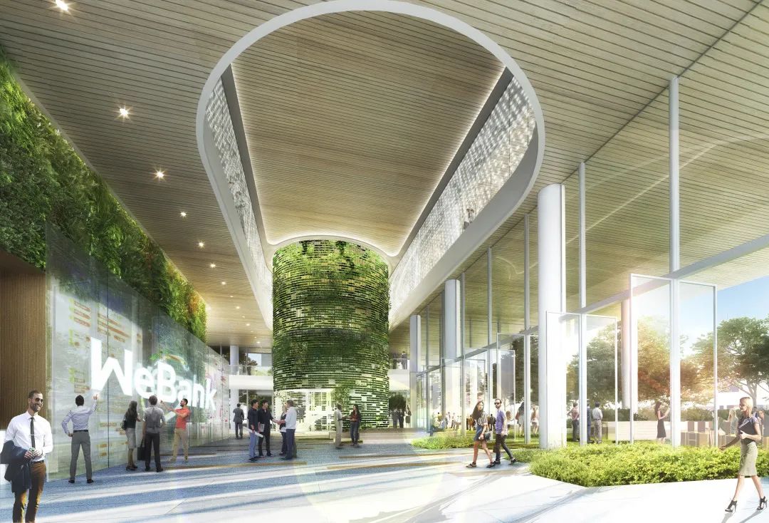 目前正在建设中的深圳微众银行总部大厦,是一个将人员与自然环境融为一体的新型办公空间。王伟琦认为,这个项目将成为一个风向标,为未来的新兴企业办公环境提供一个可选的方向。