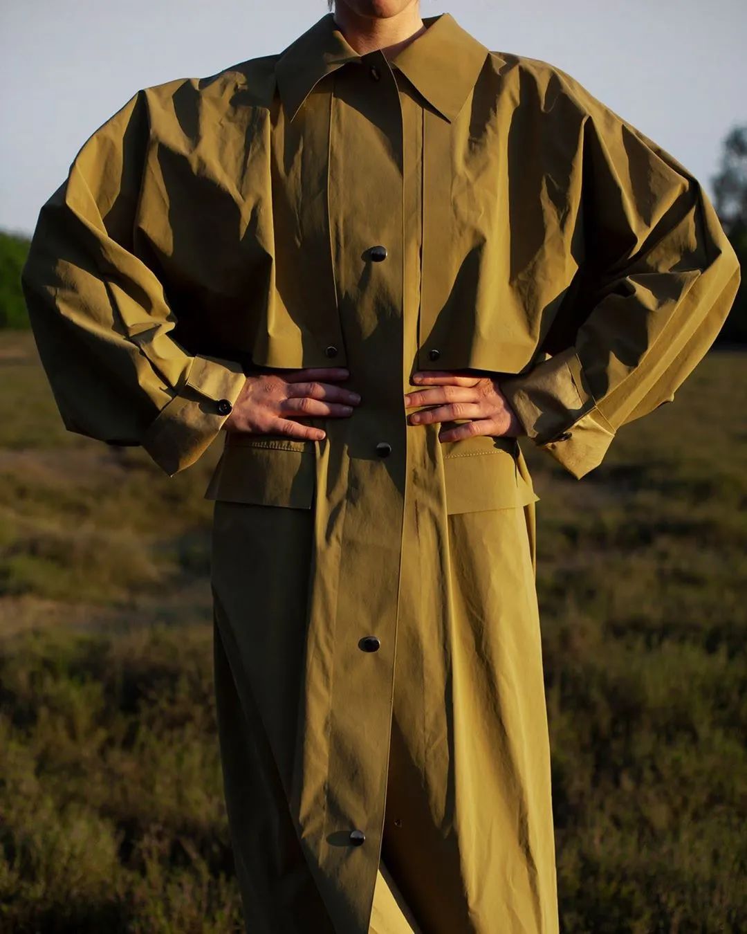 斜纹布和帆布加入防风防雨的功能,迎合了人们对实用通勤和尽享户外的需求。采用高支数的嘎巴甸、斜纹布、增加环保防水膜及涂层,在保证面料舒适性的同时,增加防水防风性能。
