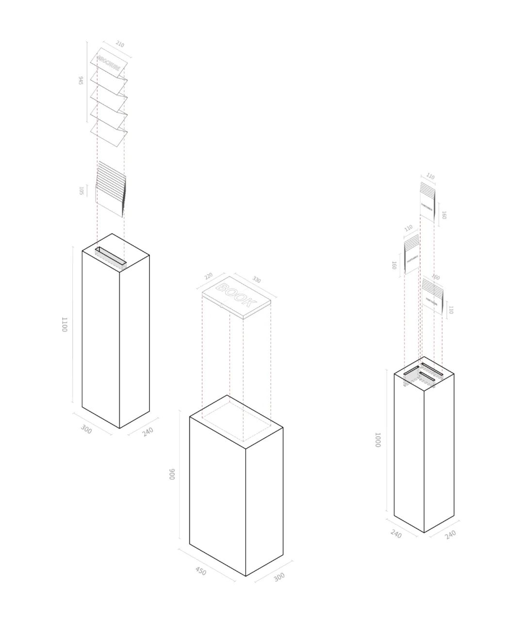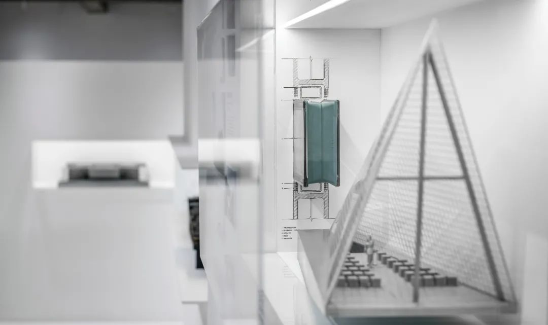 项目的材料和节点图纸被巧妙地结合在透明盒子内,从不同尺度和思考层面上展示出设计过程中的思考。