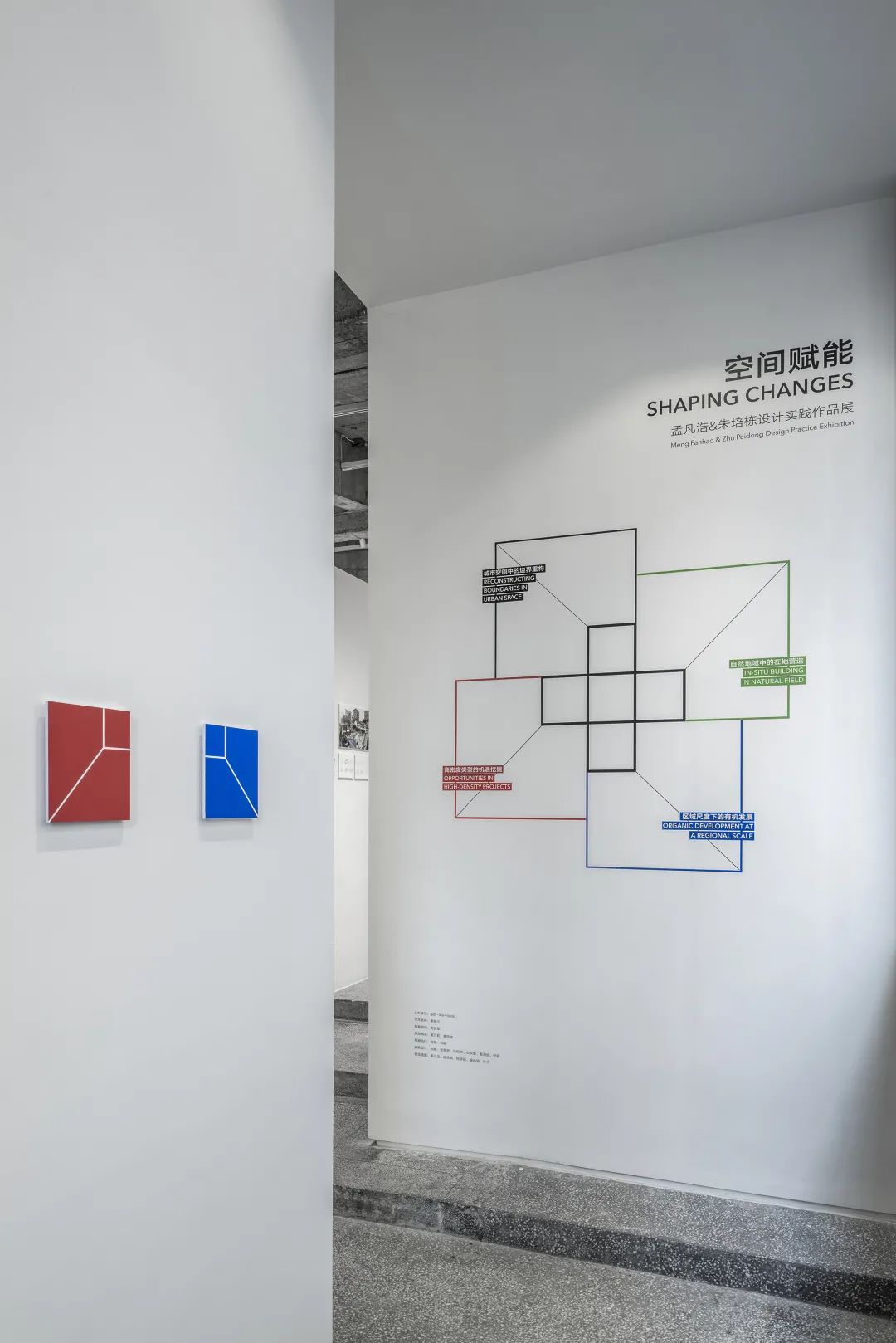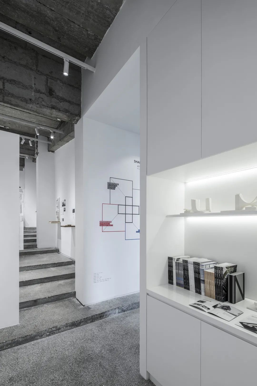 对line+来说,办公空间从不是一个一锤定音的完成品,而是一个拥有自我更新能力的有机体。2020年末恰逢事务所成立三周年,我们在一层的阶梯空间内又置入了展陈功能,对事务所成立以来的项目进行了回顾及展示,即“空间赋能:孟凡浩&朱培栋设计实践作品展 ”。
