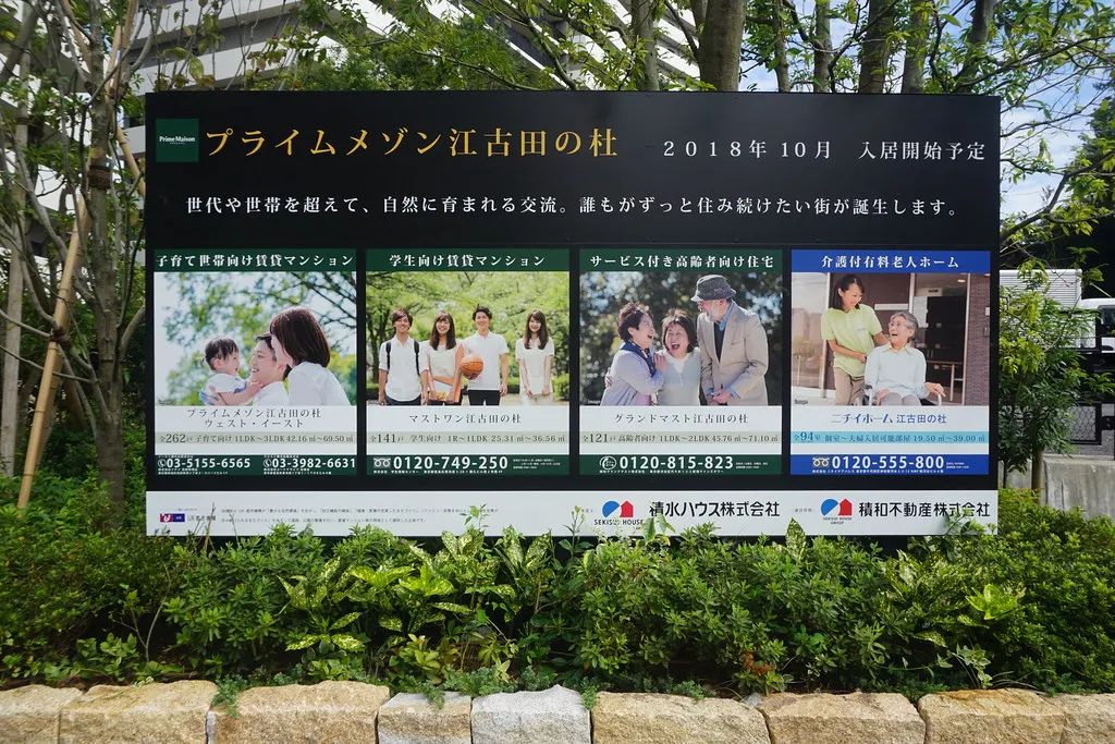 江古田之杜,是一个集合型的住宅社区,那里的房子大致可以分为4类。有面向高校学生的出租公寓,面向有孩子的小家庭公寓,面向健康老人的出租公寓,还有一种是面向需要看护服务的养老中心。