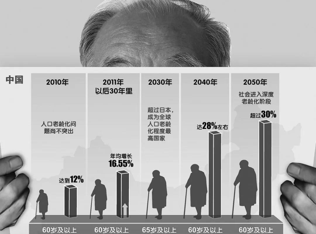 现在,我国老龄人口已经有2.6亿, 马上将进入中度老龄化社会,将在2030-2031年进入深度老龄化。
