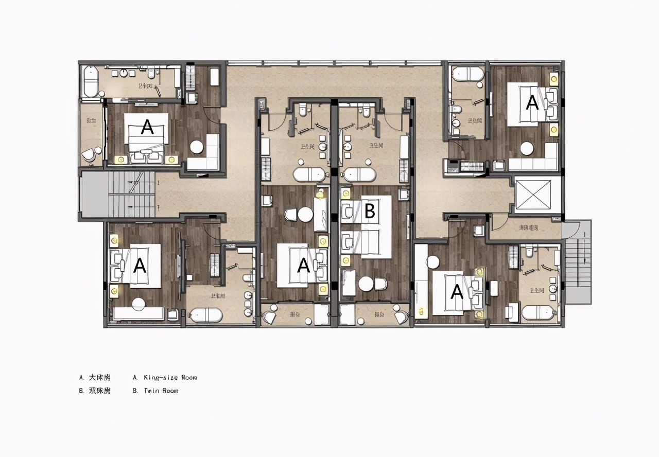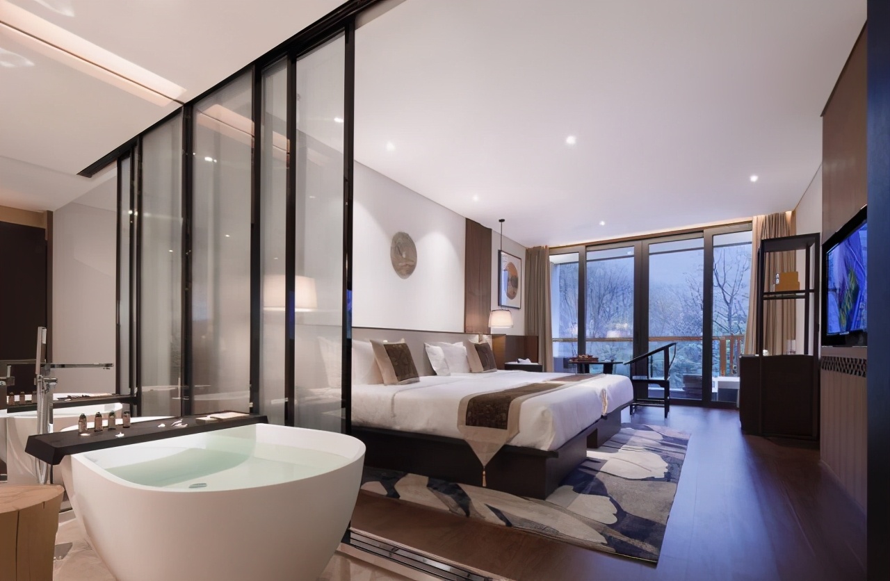 客房沿用简洁、雅致的设计笔触,让当代的设计理念,结合有拙性的物件,形成视觉上的碰撞与冲突,以情寄物,以物传情,赋予空间灵魂。客房采用了智能化系统,配合温馨的氛围照明,意境之余,更多的是舒适。