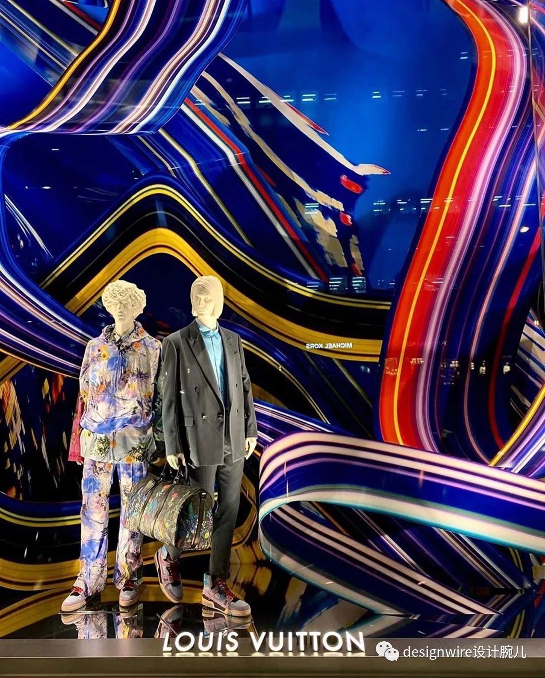 橱窗由日本摄影师Kenta Cobayashi及LV现任视觉总监Faye Mcleod共同设计,将液晶变形建模成雕塑片,如同在专门店的橱窗上布满缎带,以独特的影像手法呈现的橱窗艺术模糊了幻想与现实的界限。
