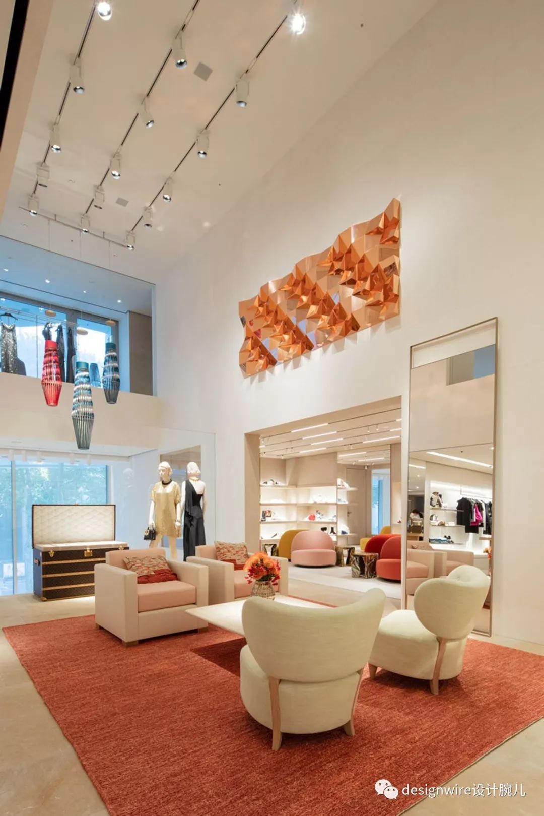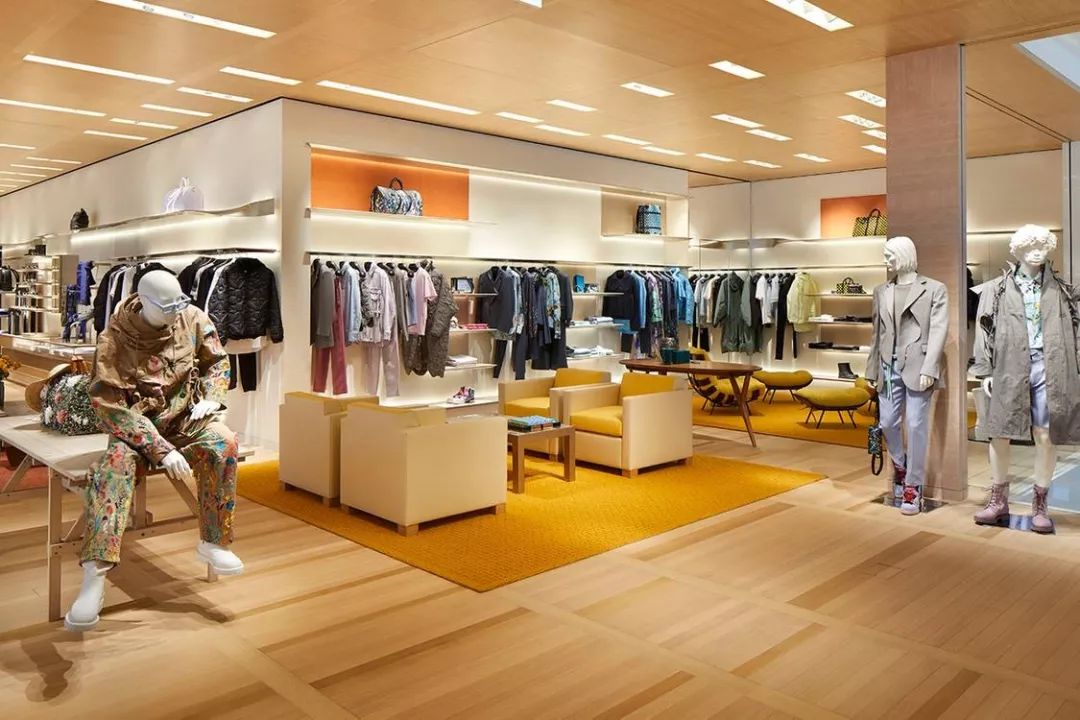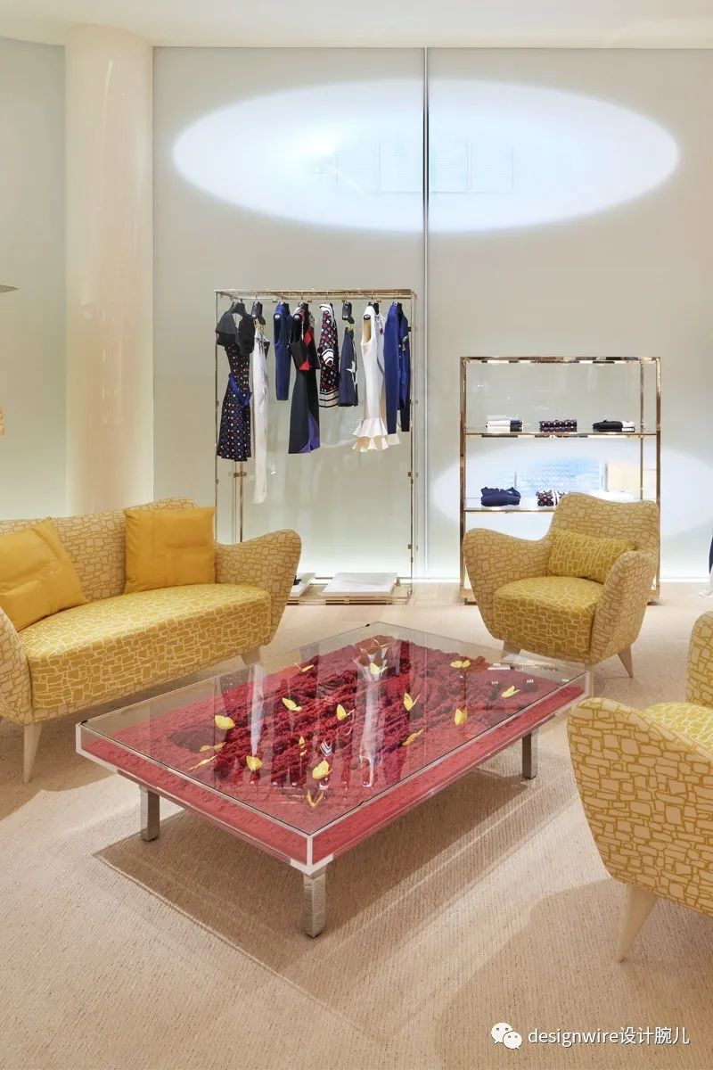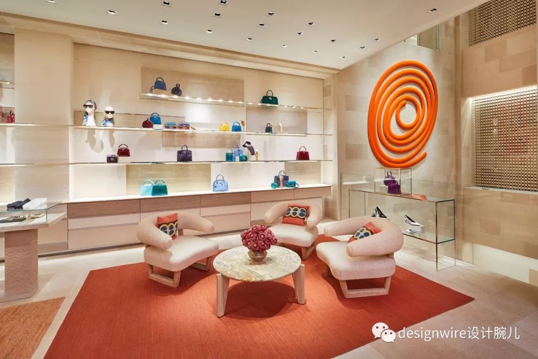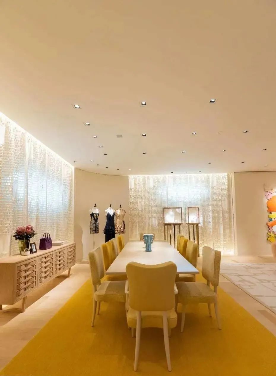 第三层和第四层提供男女成衣和皮革制品,温暖的色调衬托出服装鲜艳的色彩。 整个第六层的宽敞空间专为VIP客户准备的私人沙龙,展厅中存放有季节限量款家具和最新艺术藏品。