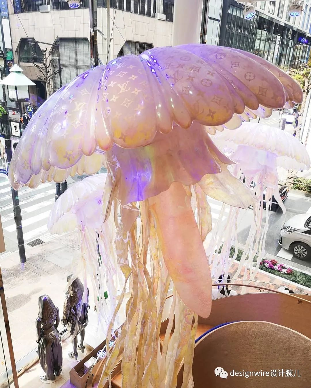 商店入口,可以看到橱窗展示巨型荧光水母四处“漂浮”,顾客置身在魔幻的海洋世界中遨游。