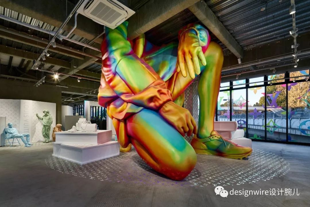 青木淳的立面设计也 呼应了男装设计师 Virgil Abloh 在2019年路易威登春夏秀场首秀中的标志性“Keepall Bandouliere 50 棱镜” 的彩虹色透明PVC压花旅行袋,为经典的路易威登Monogram帆布袋带来新鲜的活力。