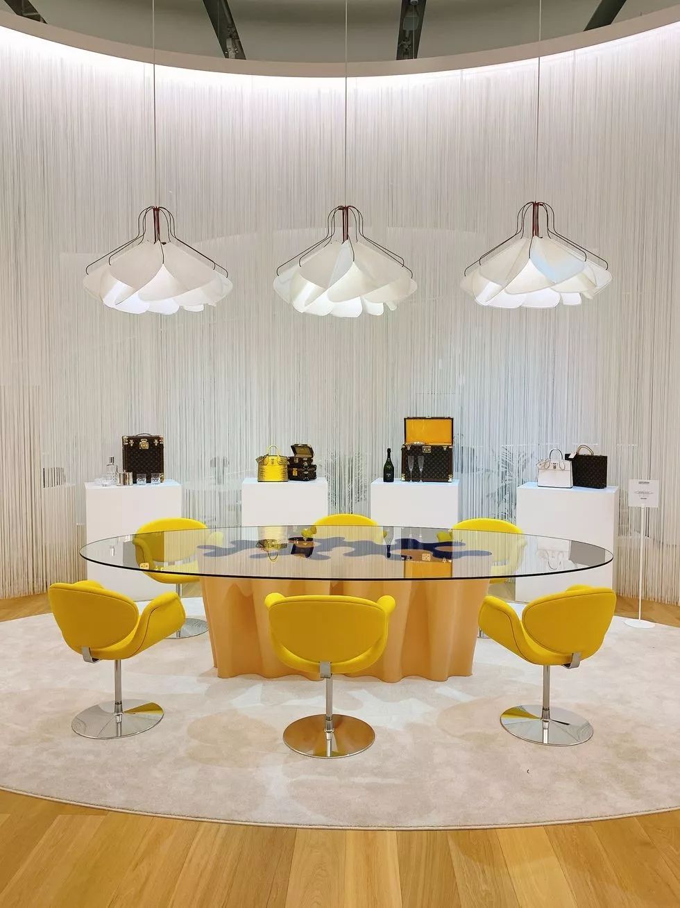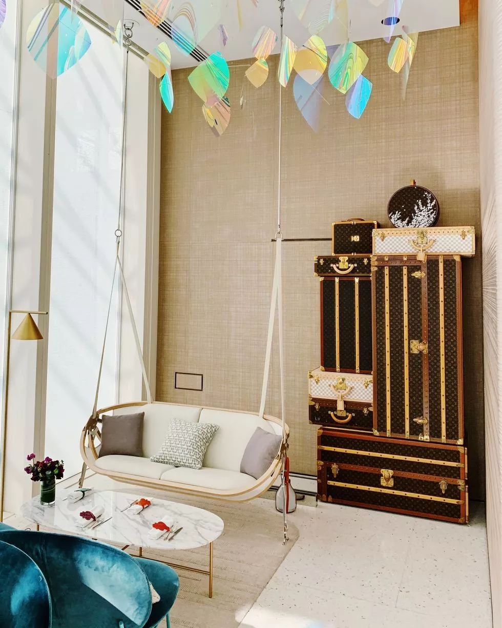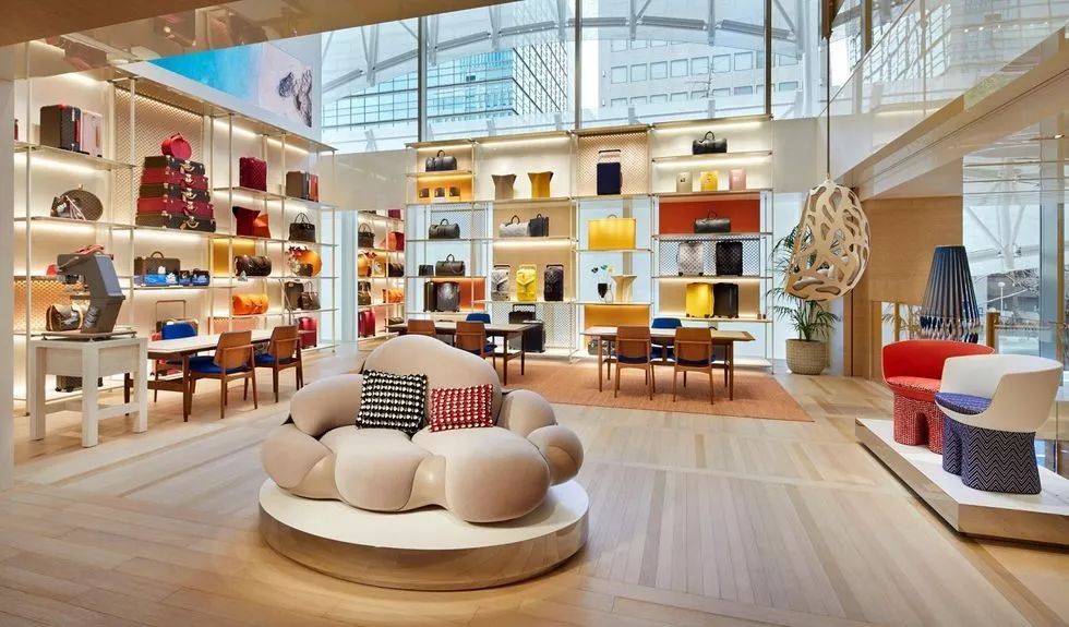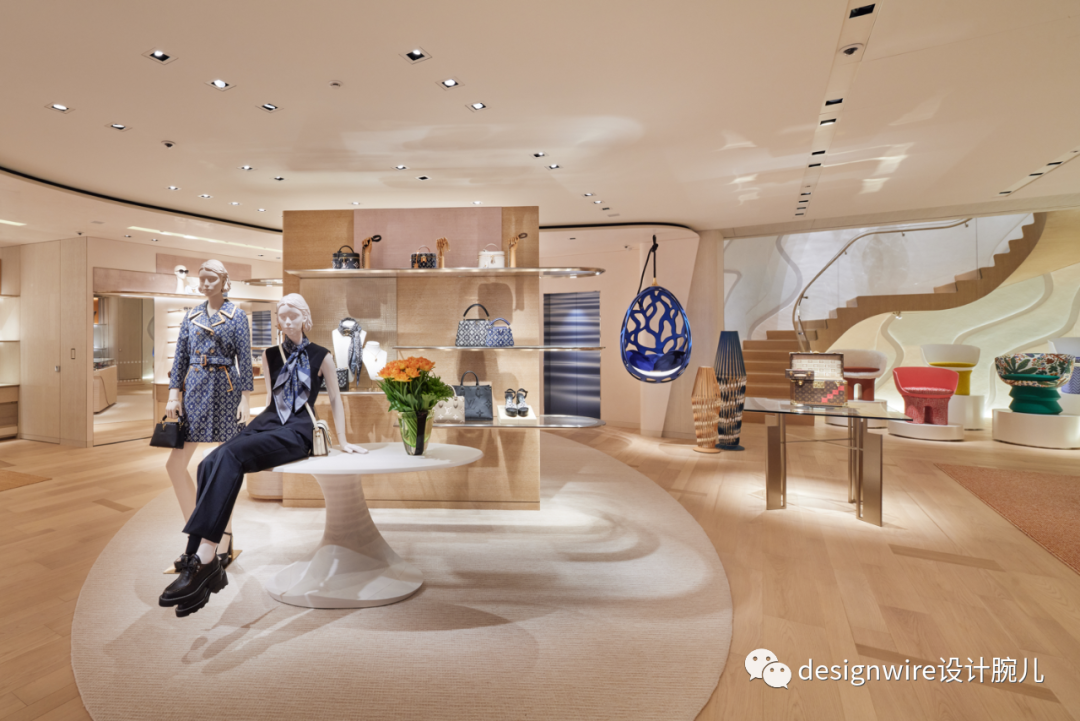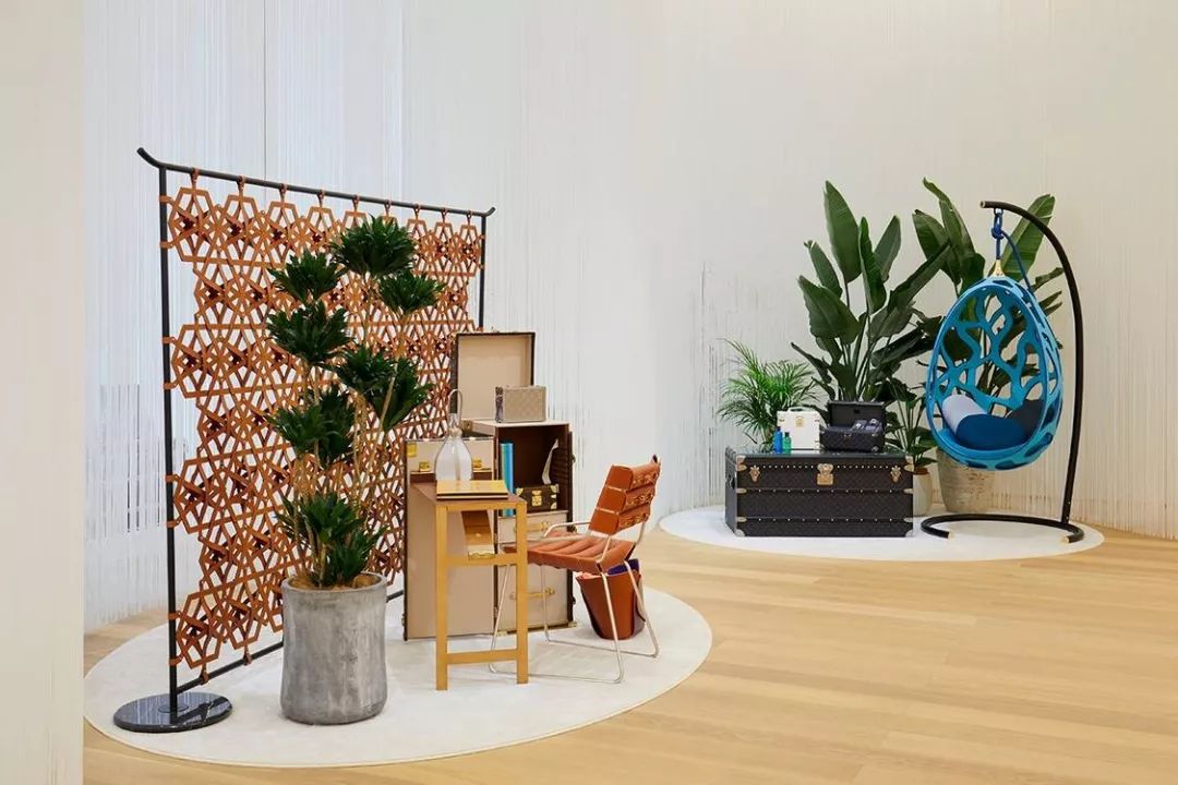 店铺中各处可以看到路易·威登的Objets Nomades系列,是与国际知名设计师合作的旅行风格家具系列,突破皮革工艺的界限,展现品牌对精巧工艺和当代美学创新的追求。