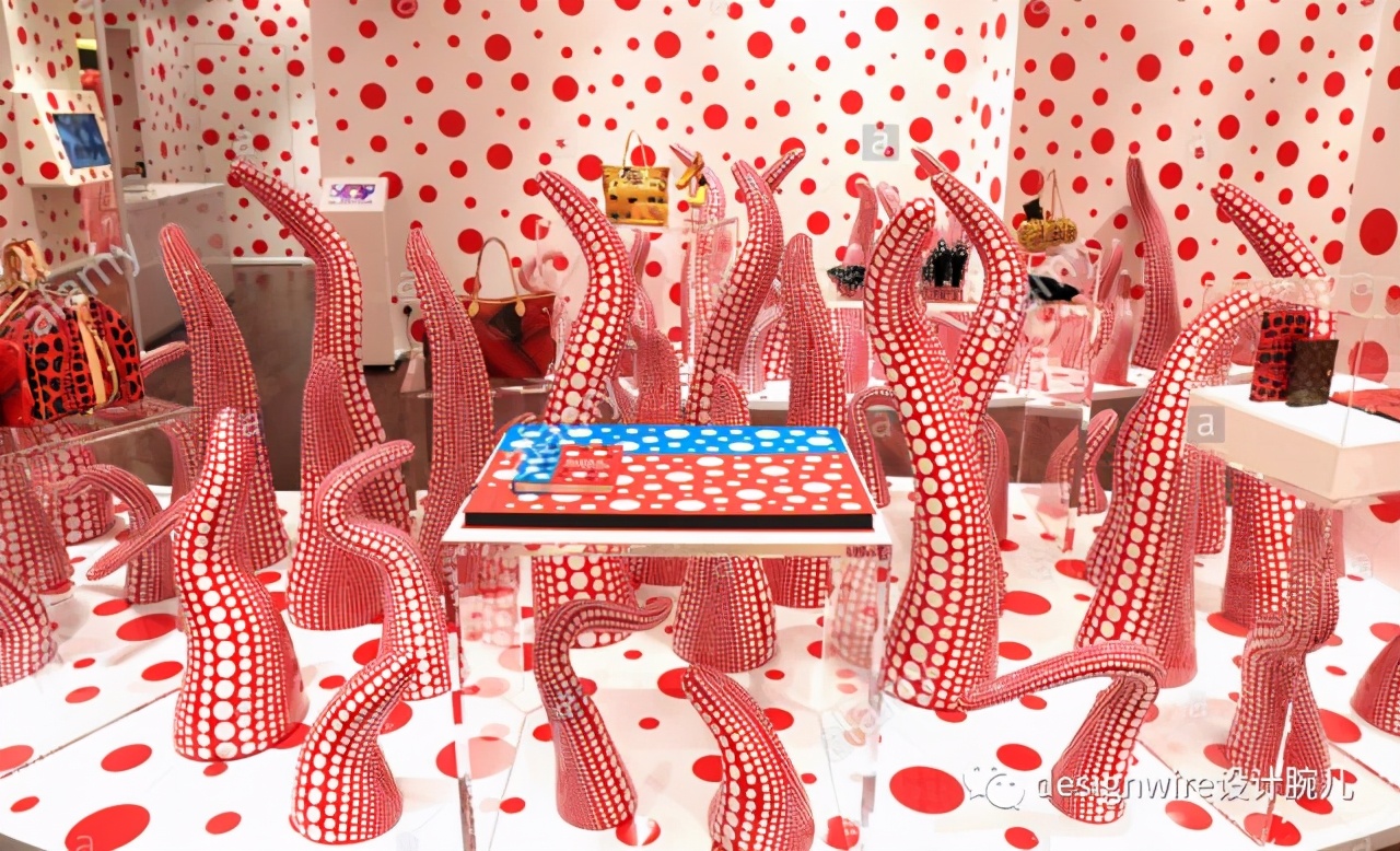 2012年,路易·威登邀请草间弥生合作设计服装系列,艺术家整体采用让人如痴如醉的波尔卡圆点为特色,将艺术元素有机地与产品设计相结合,赋予时尚独特的魅力。