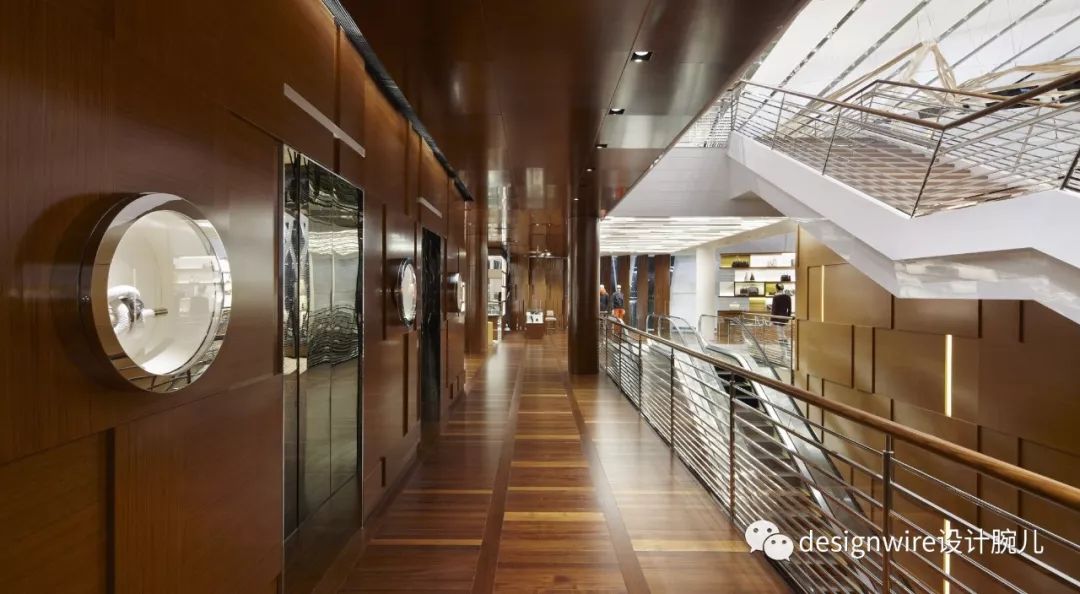 转至室内,Peter Marino延续了与航海的概念,以“LVMH总裁阿诺先生的私人游艇”为整体空间设计主题,并将日本传统文化融于其中。