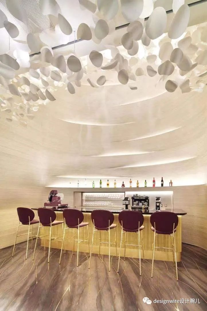 其外立面通过金属艺术装置营造阳光四射之感,室内则采用浅色石材和手工墙面材料,使从天花到地板独具特色,同时又保持了整体性。