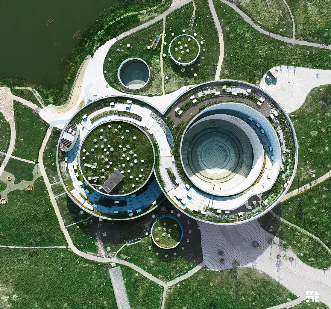 萨马兰奇纪念馆的两个主体建筑以及三个下沉式院落实则是对奥运五环标志的建筑式重新布局。其更多的是承载着文化的价值与内涵,这种形式上的构思在于将精神层面投射于建筑形式本身,从而影响观展人群的整体感观与行为认知。而环绕主体建筑的奥林匹克雕塑公园则是对中国古典园林设计理念以及西方现代园林设计手法的融汇结合。对日光的研究,热泵以及被动混合的气候空间使得建筑的总体能源需求量减少到传统博物馆的75%。也正响应着萨马兰奇先生提出的“绿色奥运”。