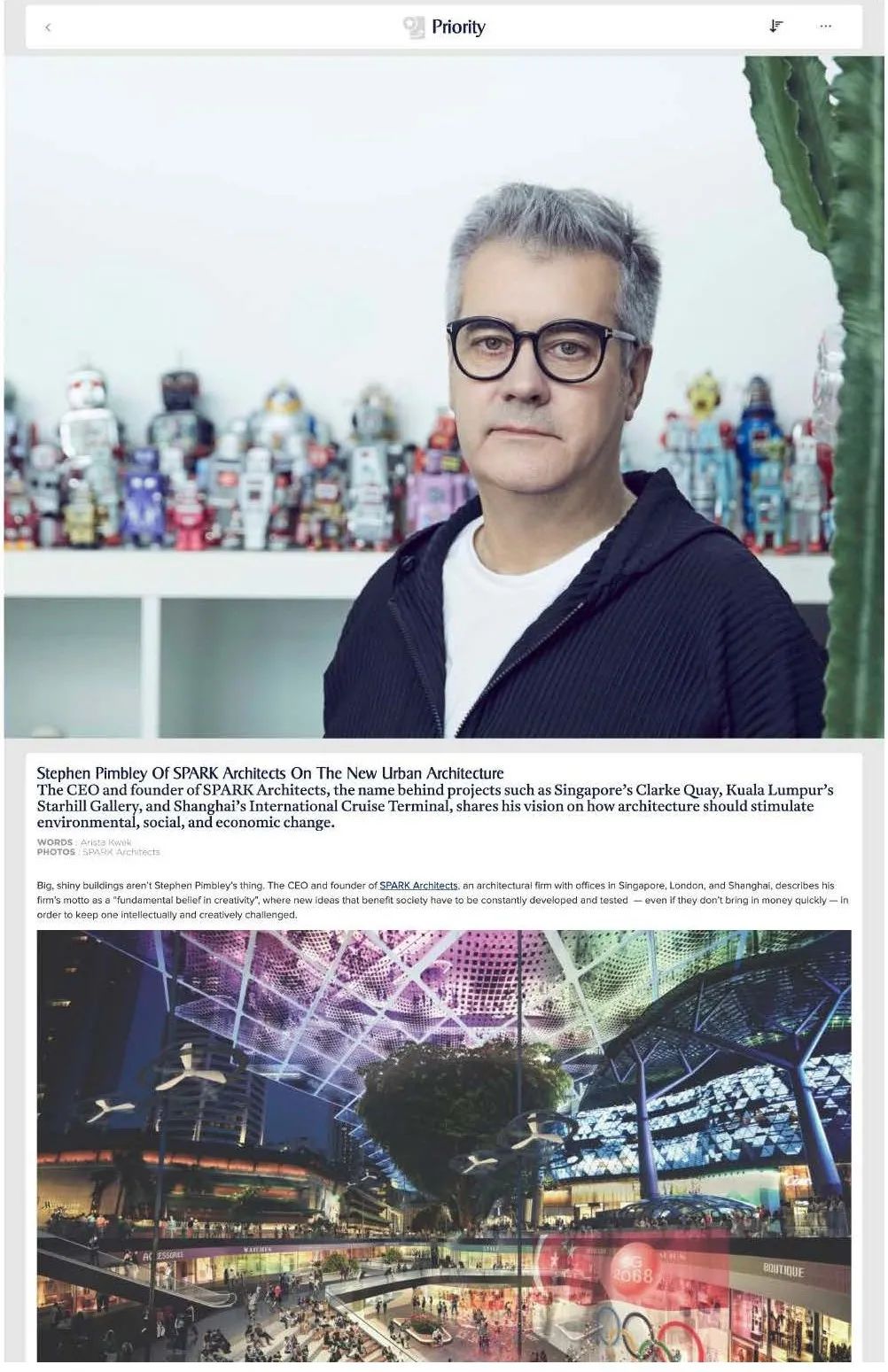近期SPARK思邦董事、创始人Stephen Pimbley接受了新加坡航空的采访。在采访中Stephen谈到了2020年是SPARK思邦成立的20周年,并分享了他对后疫情时代建筑的发展以及未来建筑将会向纯正的小型村庄发展的观点。