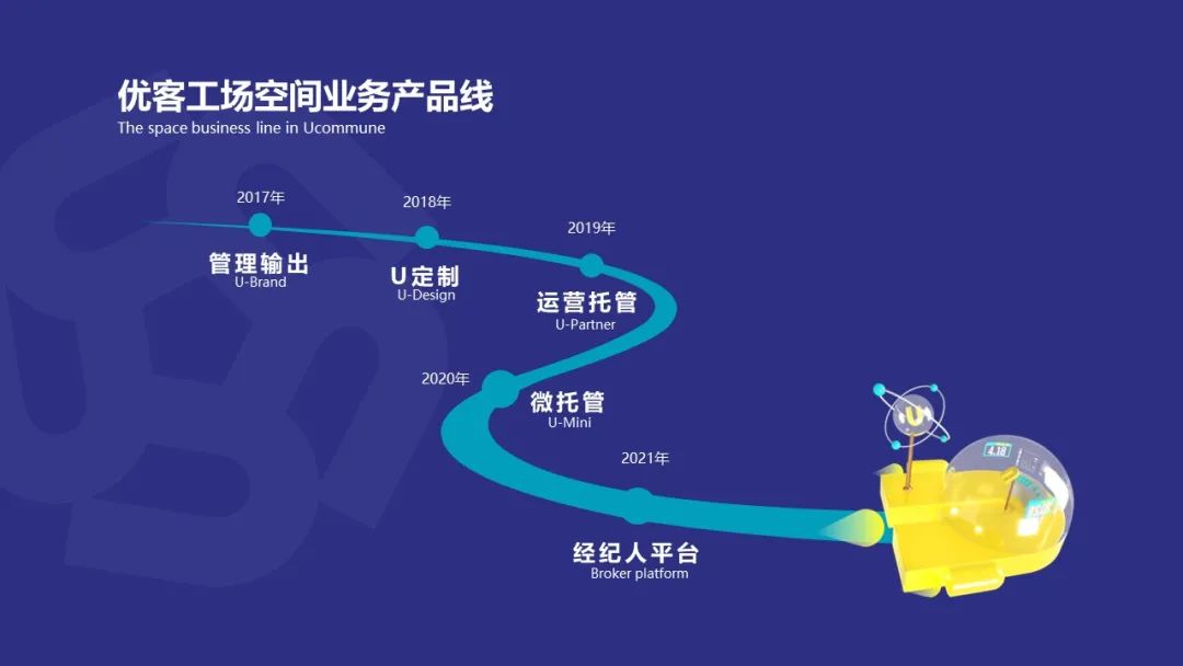 2018年,优客工场推出了专门为中大型企业提供从选址、设计、装修到采买以及后续的全生命周期运营服务的U定制业务;