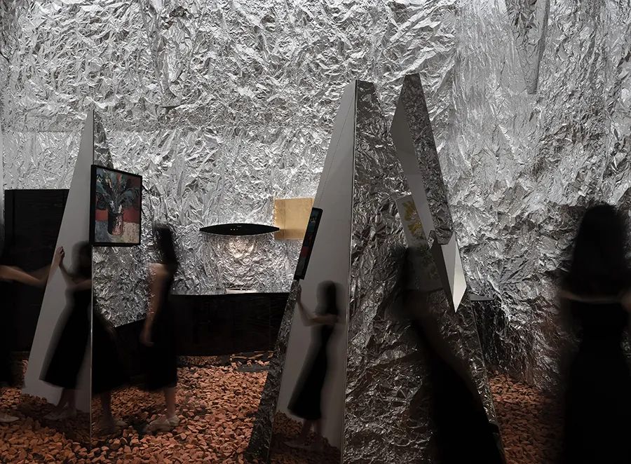 We brought red stone pieces to the floor, which sent a signal of danger and surprises to draw visitors' attention. The metal walls featured wrinkled textures, creating a strong visual impact.