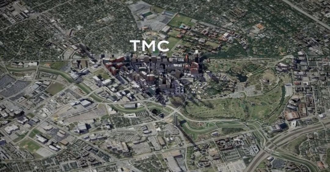 说起这个TMC,是世界上最大的生命科学“综合城”,是城市中的一个城市 - 位于休斯顿市中心以南约3英里处,拥有106,000名员工,每年接待病人800万人次,占地1,345英亩(8164亩,5.4平方公里)。