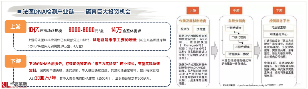 所以说,法医DNA检测产业链,蕴育着巨大投资机会。它的产业链上游是法医DNA检测仪,目前已实现部分进口替代,未来试剂盒将是主要增量,这完全可以结合成都的科创一起来做。