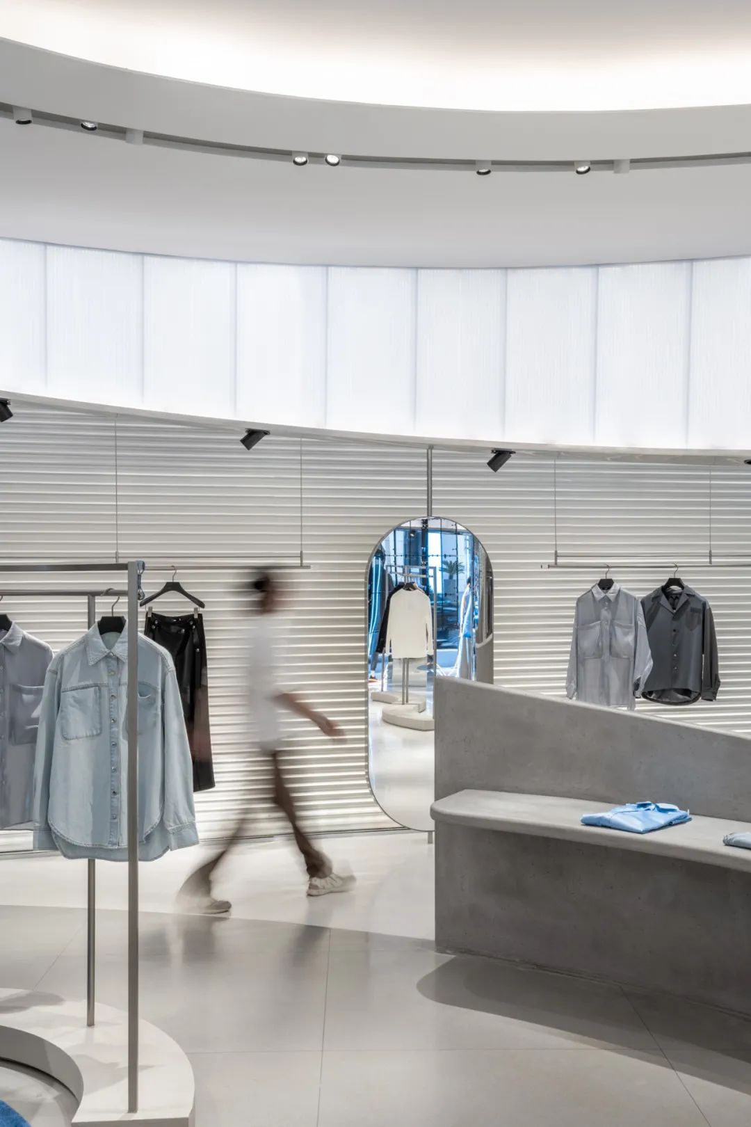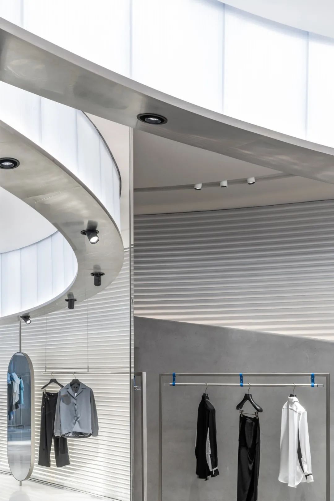 IEW.H埃维纽是中国时装界的新兴品牌,其首字母缩写意为“Infinite Explorer with Hypersense”(多元无尽的探索者)。以此为出发点,Kokaistudios为这个多元化品牌标志性的室内空间确立了记忆、流线与反重力的主题。由于IEW.H埃维纽将以一年两季的频率推出与艺术家及设计师合作的新品,在装饰与色彩上保持空间的通用性与中立性尤为重要。