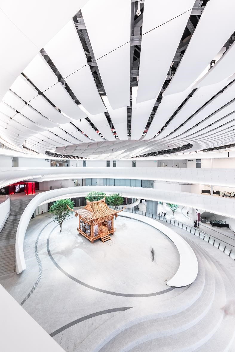 从外部欣赏香港戏曲中心的外形,酷似中国传统灯笼,大门设计独特,围绕一个迷人的、多层次的圆形中庭设计了拱形入口,犹如舞台帷幕缓缓拉开。步入其中,好像踏在琴键上,音乐声起,浓郁的戏曲艺术氛围让人沉醉。