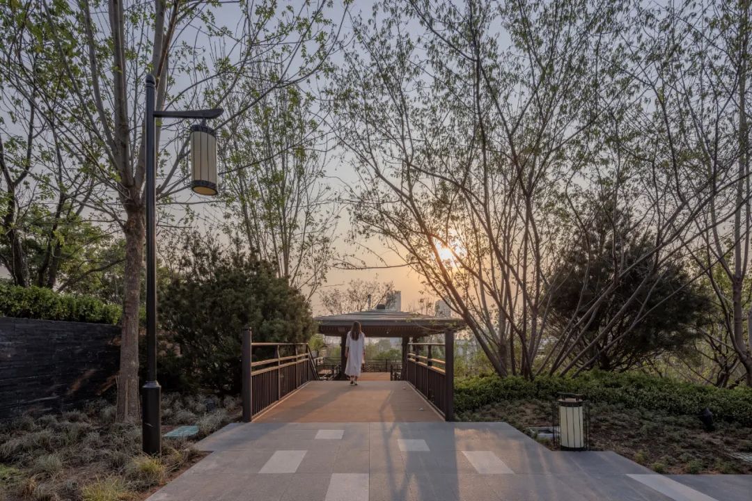园内东部有14米的边坡,由东到西产生10米高差。如何利用高差来打造宜人的景观体验,是此次公园设计的难点和挑战。其次,公园北侧为监狱,需要打破人们对场地不友好的刻板影响,如何利用景观在长风街与监狱之间做好视线干预、改善周边生活品质也是一大难点。