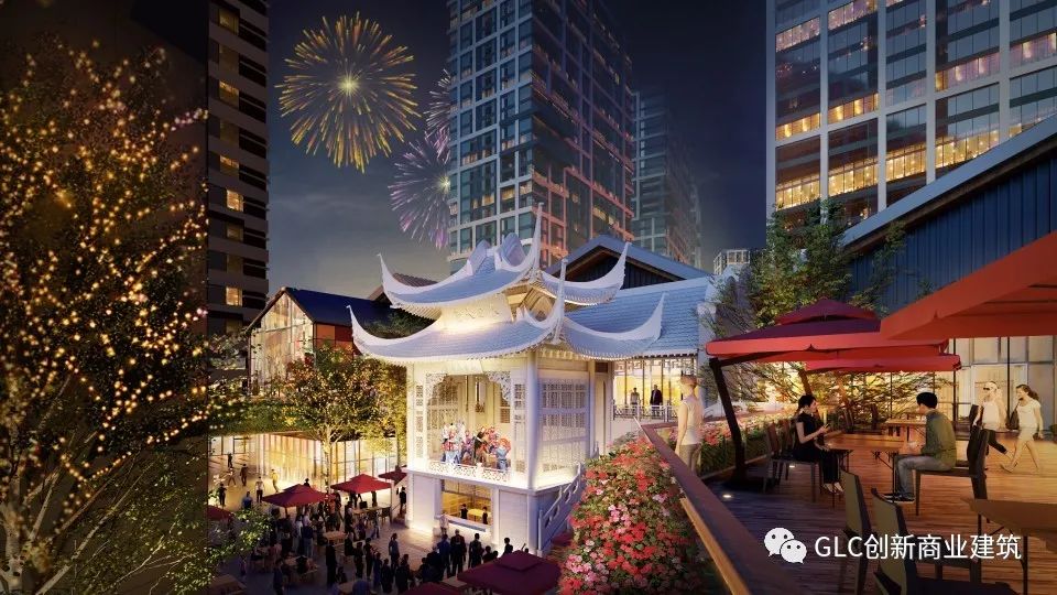 如今,对于越来越具公众社交属性的购物中心而言,景观变得与建筑一样重要,从某种程度而言,GLC营造的已不再是一座纯粹的商业空间,而是一个复合的“购物公园”,这里面同样包含了GLC始终强调的“RPTH”四要素(即:R=Retail, P=Park&Plaza, T=Transit和H=Hall),在空间的实际表达中,成都花博会(成都珠江新城B区一期)项目,更像是一座既满足了现代人生活与休闲需求的城市综合体,又是一座浓缩了城市脉络发展的文化小镇,这在“柳安小銮”的打造上更为明显。