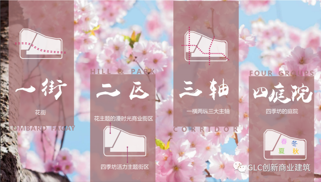 李小霖和GLC团队,开始对花博会地块进行崭新的梳理与规划,如今的“一街”成为该地块贯穿东西的主要风景与商街,与南边合生购物中心遥相呼应,未来“花街”中的绿植花卉、瀑布喷雾等造景,毋庸置疑会成为合生中央中庭外的最精彩景观,吸引更多人流汇入。“二区”即二期待开发区域,不仅囊括了花主题的慢时光商业街区,还将“春夏秋冬”四庭院主题穿插其中,改变了原本地块一马平川式的平淡,再与西区地块融合成新的板块。“一横两纵三大主轴”的格局就此形成,最终贯通“东西南北”,将整座新区内的住宅和商业等设施一并串起。