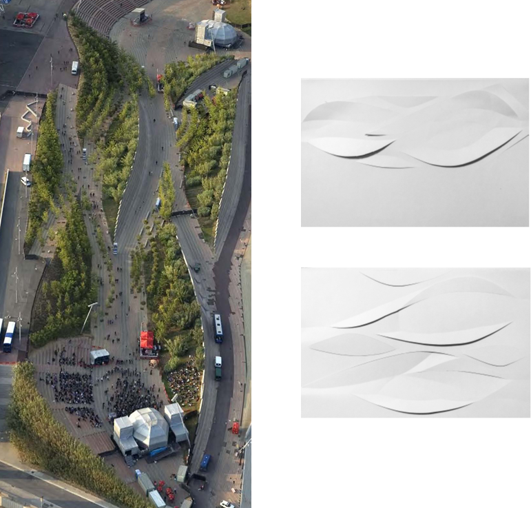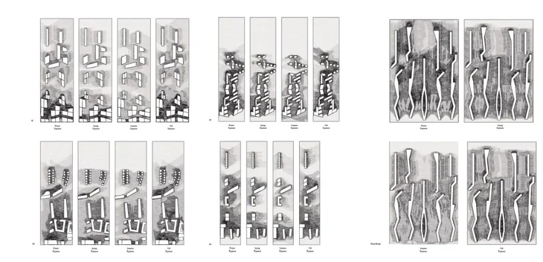 学会通过纸张的折叠、切割作为媒介来探索地形的形式,在做模型的过程中去体会学习案例,抽象空间元素,并转化为自己的设计语言。脱离“平面设计”,真正学会通过模型制作推敲设计。