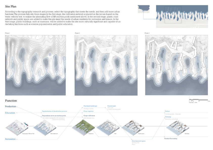 弹性景观允许水在一定时间内进入场地,并在破坏性的自然事件之后变得更强大。本次课程的目的在于探讨面对海平面上升的风险,设计师如何创造弹性景观:学会利用地形设计语言塑造水陆分布,引导水的停滞与流动以抵御风险,同时根据滨海社区的布局形态进行调整设计,以便实现集体水资源管理。