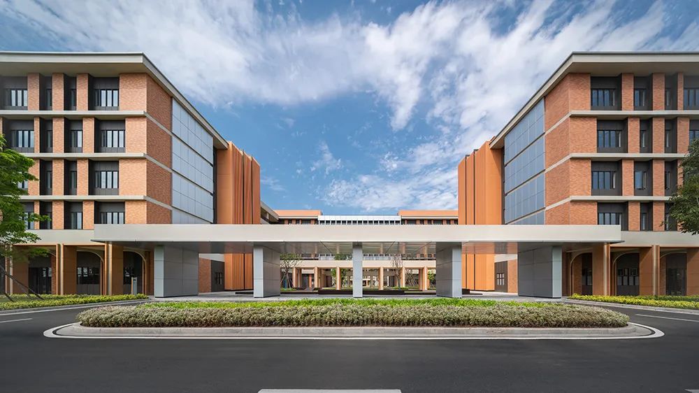 校园的一大亮点是融入海口当地建筑特色的半开放式教学建筑,设计沿教学楼设置廊柱通廊模拟骑楼空间,巧妙地将两所学校串联起来,形成容纳更多交流活动的公共空间,提升学生间的互动。