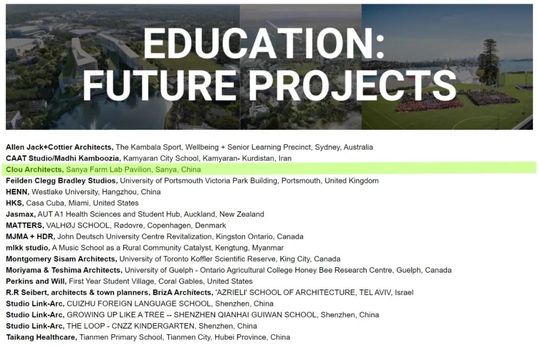 CLOU's concept design of Sanya Farm Lab has been shortlisted in the 2021 Education - Future Project category. WAF received many entries each year and being shortlisted is a big honor, also the great news is that Sanya Farm Lab is being constructed and fully operational along the process.