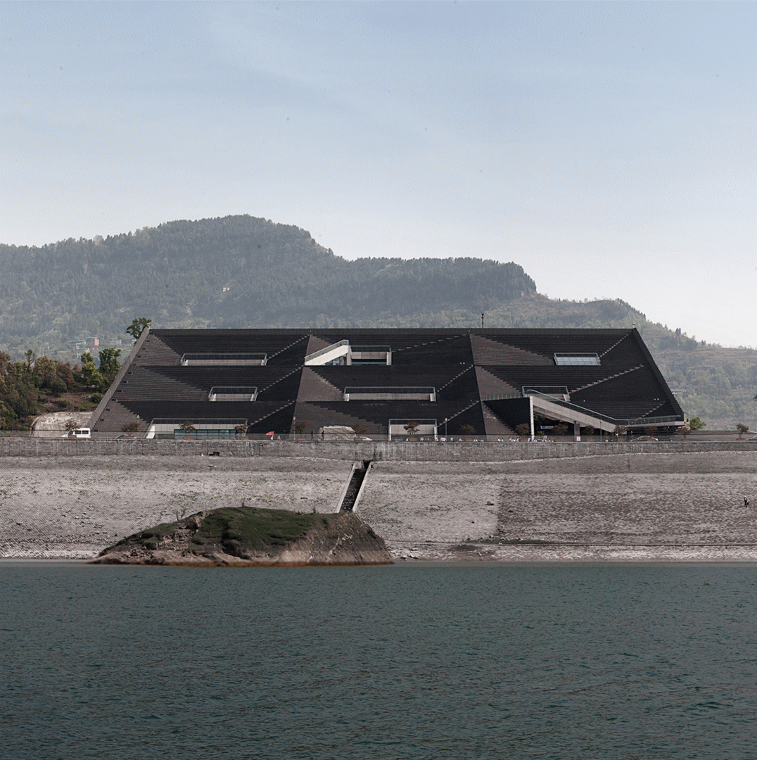 Yunyang Civic Cutural Centre locates at Yunyang, a historic city alongside the coast of the Three Gorges. It is comprised of an architectural interface and a geometrically-shaped square. Taking the form and angle of a dam, it conducts conversations with the water and integrates into the contours of the mountain.