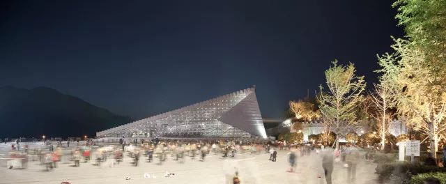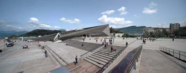 项目于2012年建成,受到了市民群众的广泛好评和喜爱,广场上满是跳“坝坝舞”的人群,建筑成为城市新的标志性空间,甚至成为年轻人婚纱摄影的背景。有趣的是,在方案公示之初,有相当一部分的市民对设计不甚理解。也许当初效果图呈现的一个类似构筑物的建筑与市民对文化建筑华丽或者高技的想象相去甚远。但建成之后,建筑自身,用它简明逻辑传达的优雅,以市民既陌生又熟悉的语汇营造的场所氛围,博得了民众真正的精神认同,在城市和山水之间建立了一个具有人文价值的公共空间。