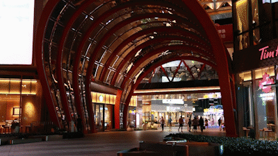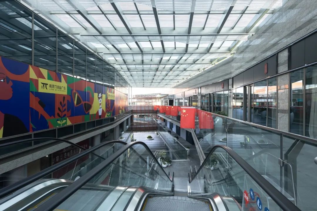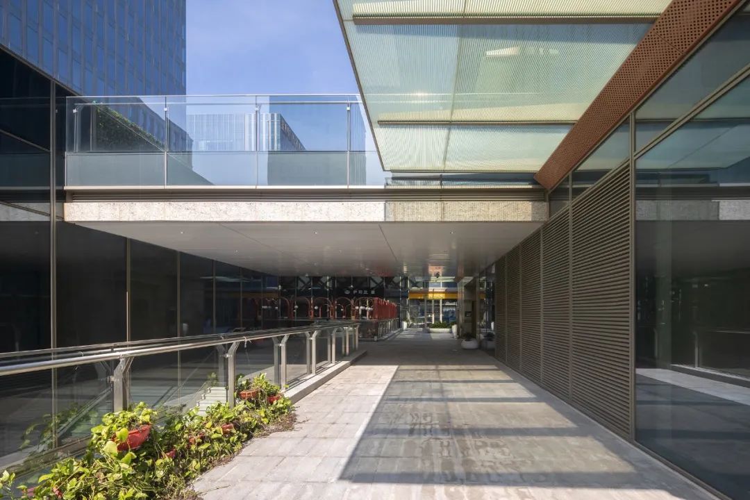 步行街内有阳光和新鲜空气。采光顶棚采用单元式金属格栅与玻璃拼装而成,在晴天具有强烈、明朗的光影效果。在这条步行街的两侧,基于商业运营逻辑,靠近城市道路的一侧是餐饮为主的、进深更大的主力店,而靠近内广场一侧则将空间打碎,容纳业态上更为轻量的店铺。