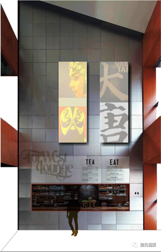 那里的筒子楼原先完全没有设计可言,我们把走廊偏移到一边,把消防设备朝向背面的那一侧,中间的一大块变成了有趣的公共空间,某种意义上,也是一个特别的美术馆,在这里面展出了好多我们自己的成果,展览无处不在,比如:学生的创作、访客的展览、理科生的电子显示装置,还有一些开脑洞的互动装置,有点像一个微型的城市,里面既有办公,还有教学,既有娱乐,还有“餐饮”——我们设置了一个小小的茶座,主题形象是黄庭坚的《松风阁帖》。