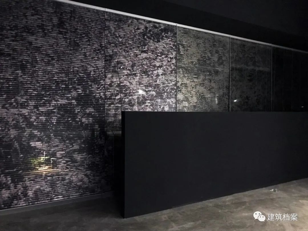 像素百叶上的风景呼应着室外的风景,在不同光线中呈现出迷人的变化 / 人文社科学院新办公室,人文中心展厅,2017-2020,2020入驻