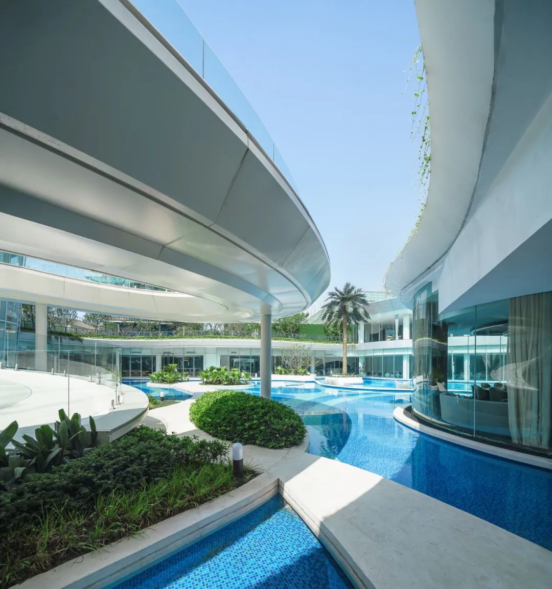 从风光宜人的太湖获得灵感,结合建筑的游艇造型,将安兰诺雅打造成一片热带海岛风情的度假区。