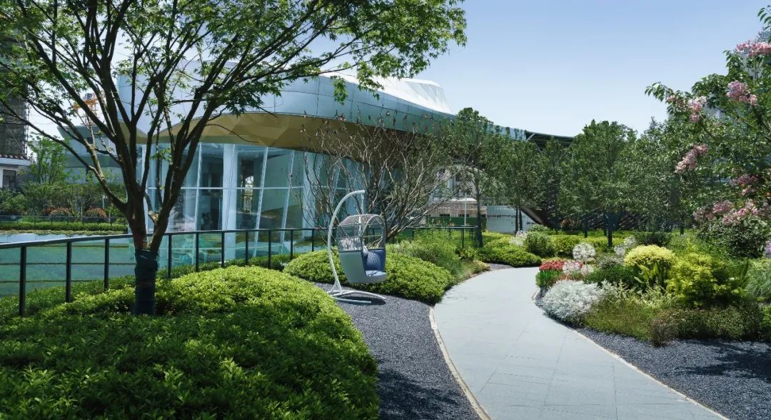 归家路畔,蒲公英雕塑随风摇曳,花境错落有致,其间金属吊椅温馨而精致,若不是归家心切,谁不想在这儿多停留片刻呢?