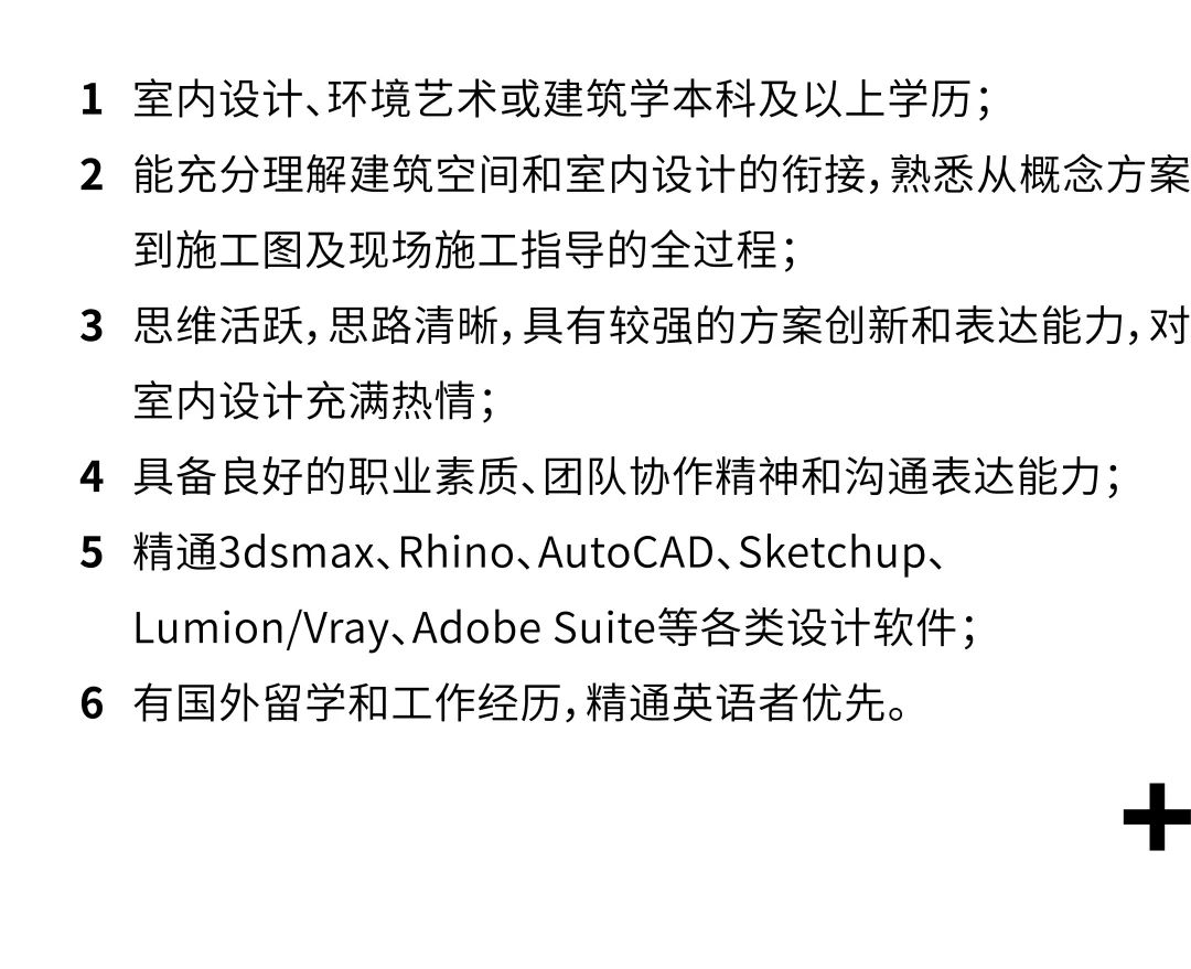 2. 有一定的建筑理论基础和自我学习能力,了解国内外设计相关行业动向;