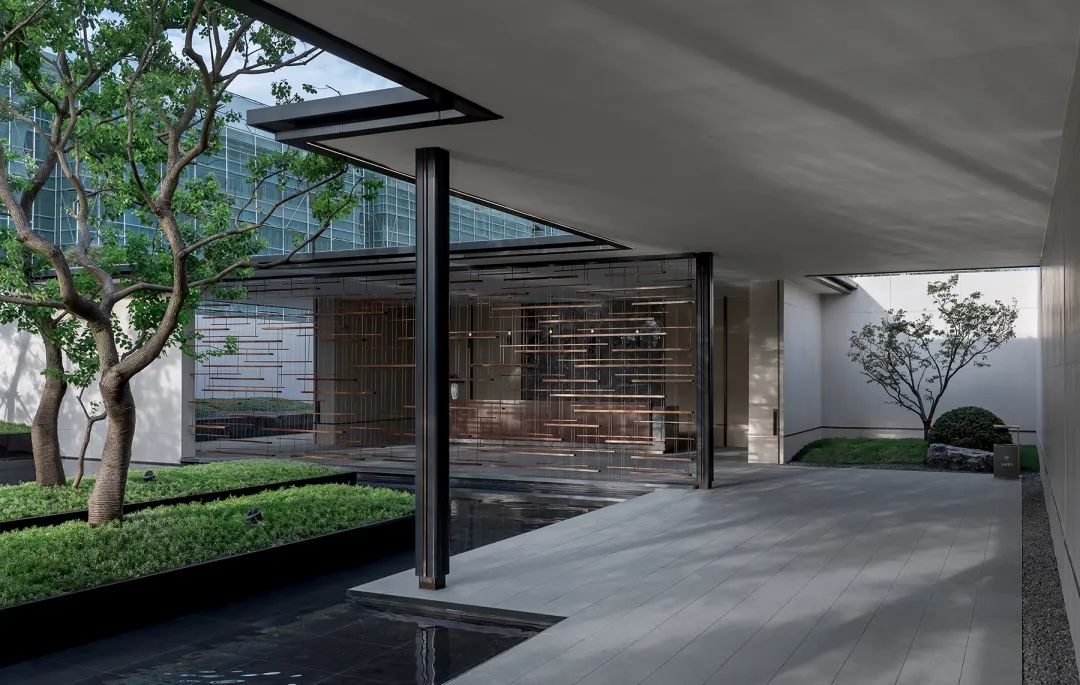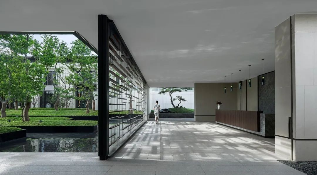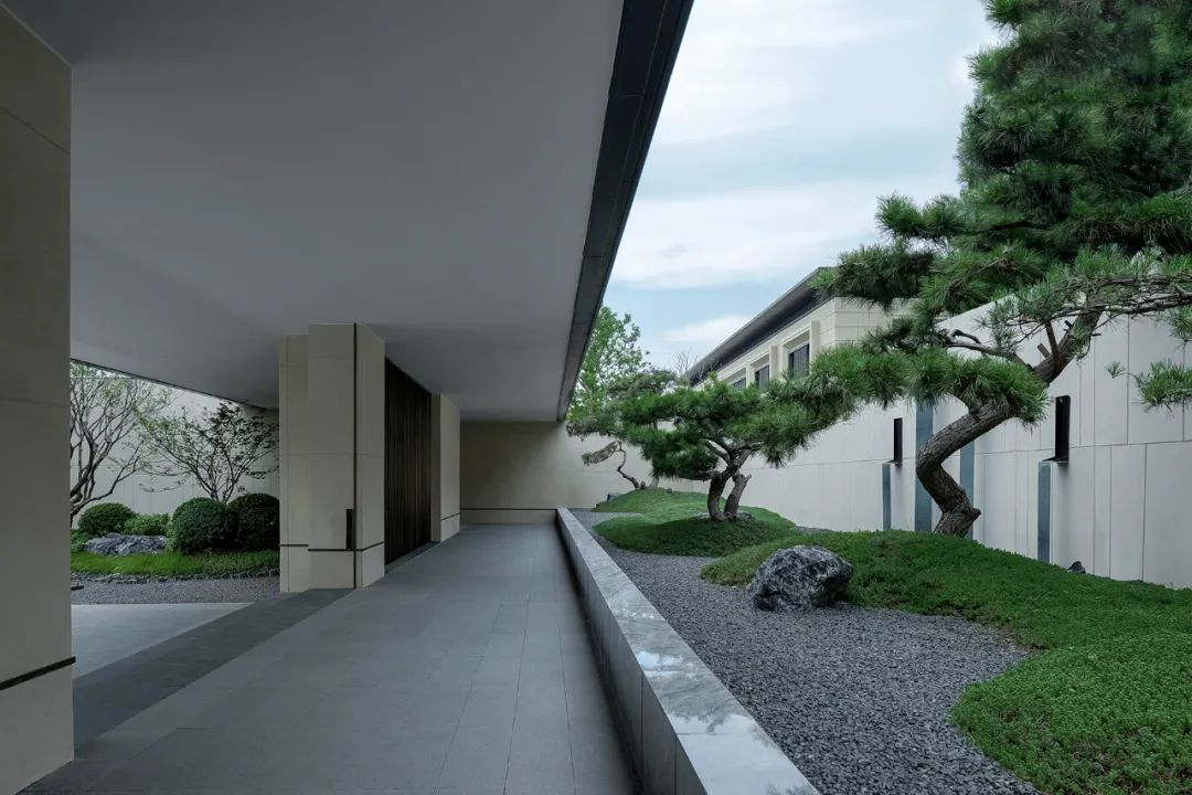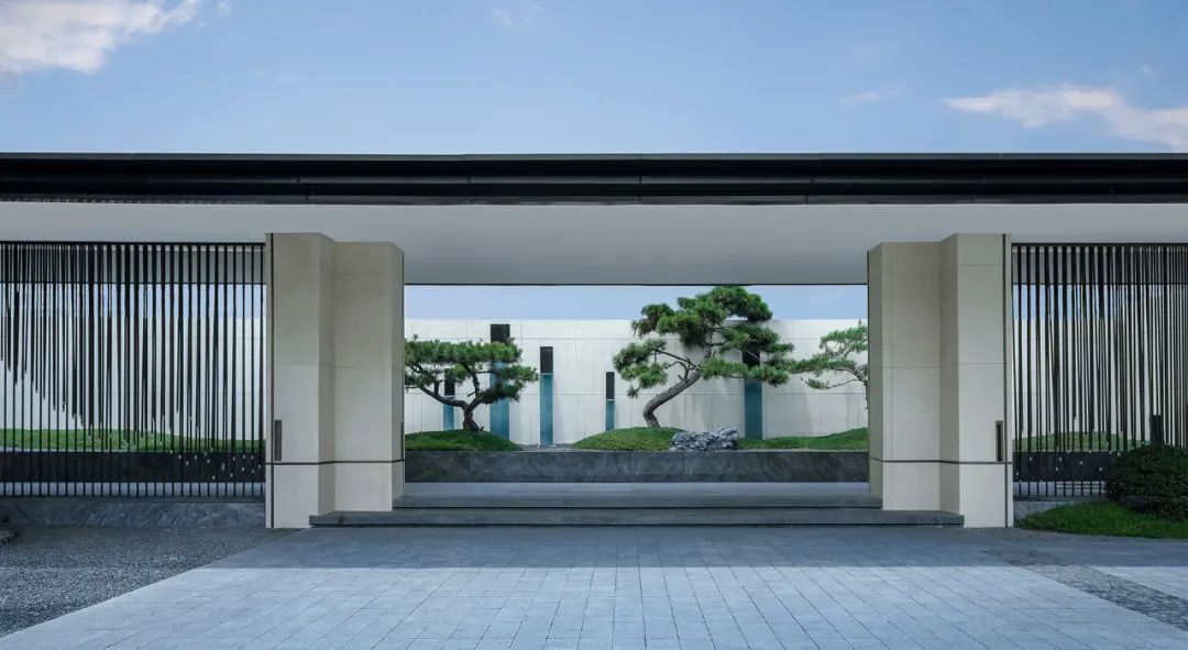 还是那个宽宽的门框,人字坡的屋顶。青砖黛瓦,格栅林立,青松置于石上,一派秀逸婉转的江南模样。一道门,大隐于市,仿佛将所有外界的喧嚣都隔开了。